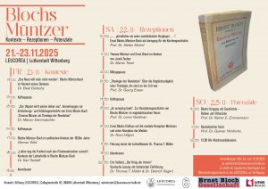 Vom 21. bis 23. November 2025 findet in der Leucorea in Lutherstadt Wittenberg die Tagung „Blochs Müntzer. Kontexte – Rezeption – Potentiale“ statt. Dabei handelt es sich um eine Kooperation zwischen der Thomas-Müntzer-Gesellschaft, der Ernst-Bloch Gesellschaft, der Stiftung Leucorea und der Stiftung Luthergedenkstätten in Sachsen-Anhalt. Als Referenten werden unser Vorsitzender Prof. Dr. Stefan Michel, unsere stellvertretende Vorsitzende Dr. Marion Dammaschke und unser Vorstandsmitglied Dr. Thomas T. Müller beteiligt sein.